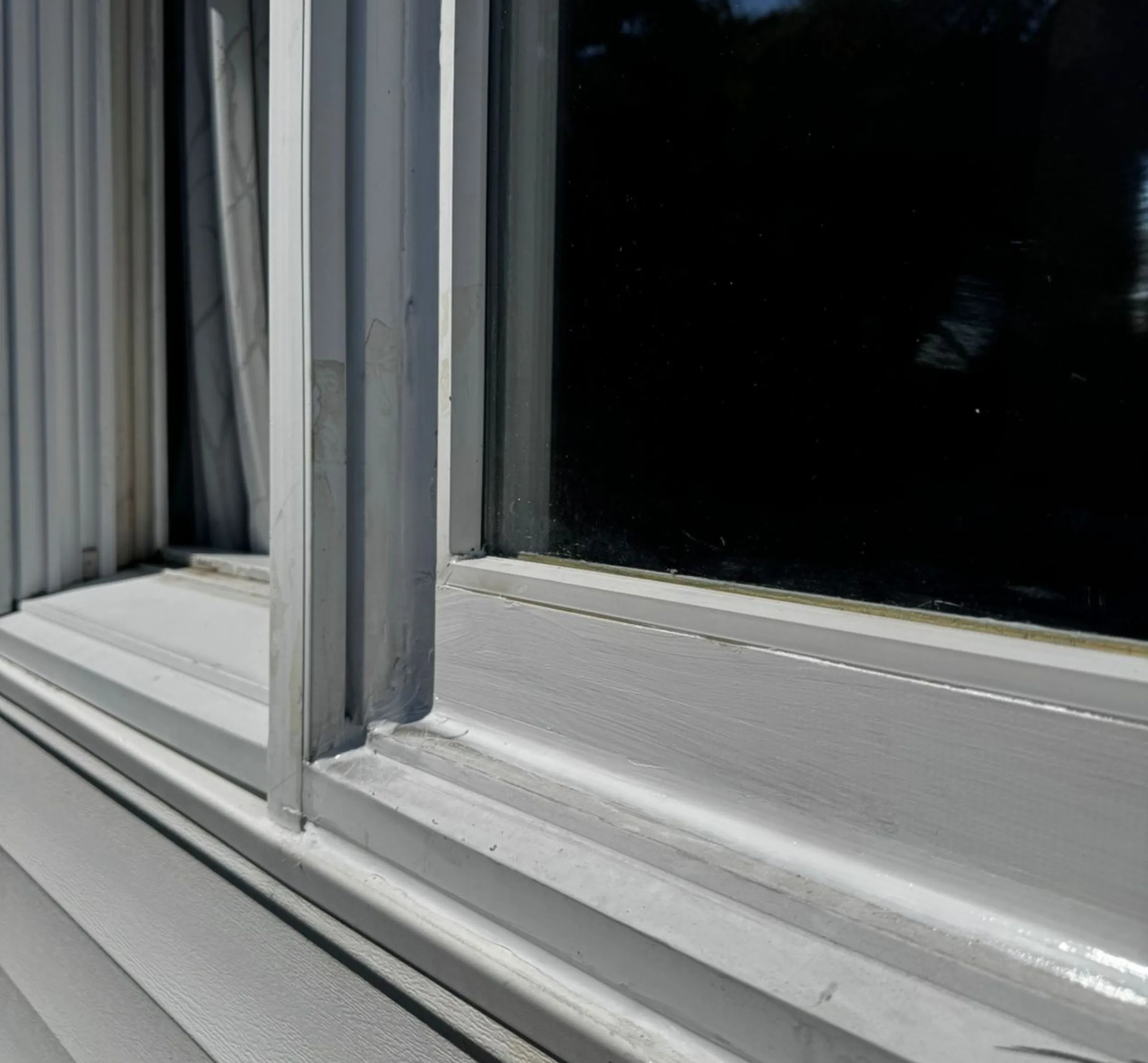 After the structural repairs were complete, we prepared the entire frame for finishing. This included sanding, priming, and sealing every joint. We applied exterior-grade coatings to protect against moisture and UV exposure. The paint was color-matched to the Andersen factory finish, ensuring the repair was invisible to the eye but solid to the touch. The before-and-after difference was dramatic: the left side showed rotted, peeling wood, while the right side now displays a strong, smooth, newly restored frame.